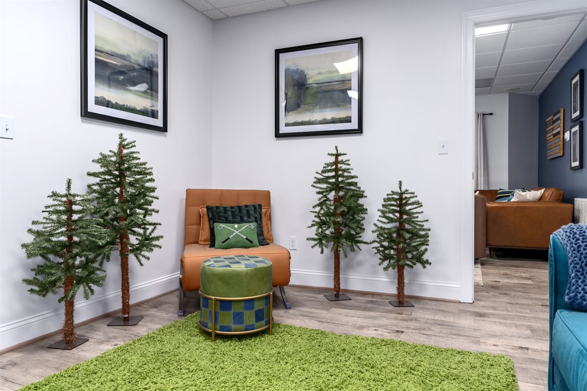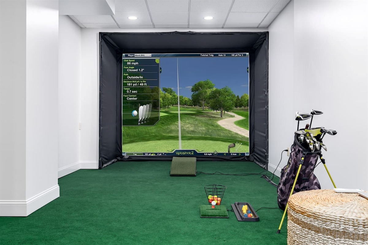 Outdoor putting green, indoor golf simulator, entertainment room, large screen TVs, Instagram spot for photos, etc...