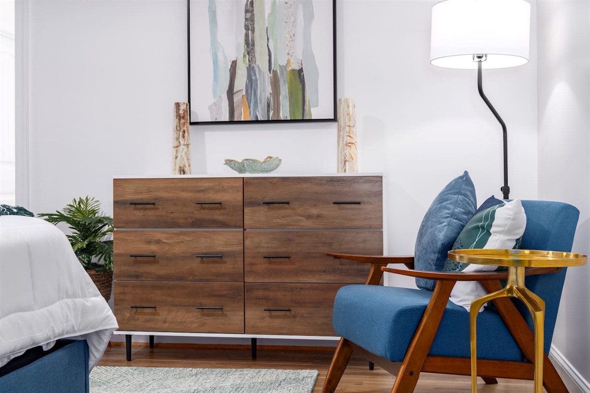 Bedroom #2 - Relax in comfort in this one of a kind bedroom. King size bed , dresser and lots of closet space. Luggage valet in the closet. Digital clock with built in USB charging