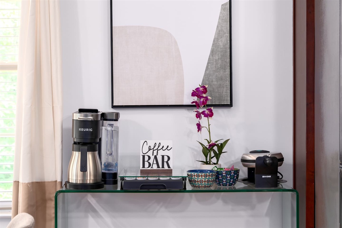 Wake up with Coffee, Tea, Hot Chocolate, and Waffles
